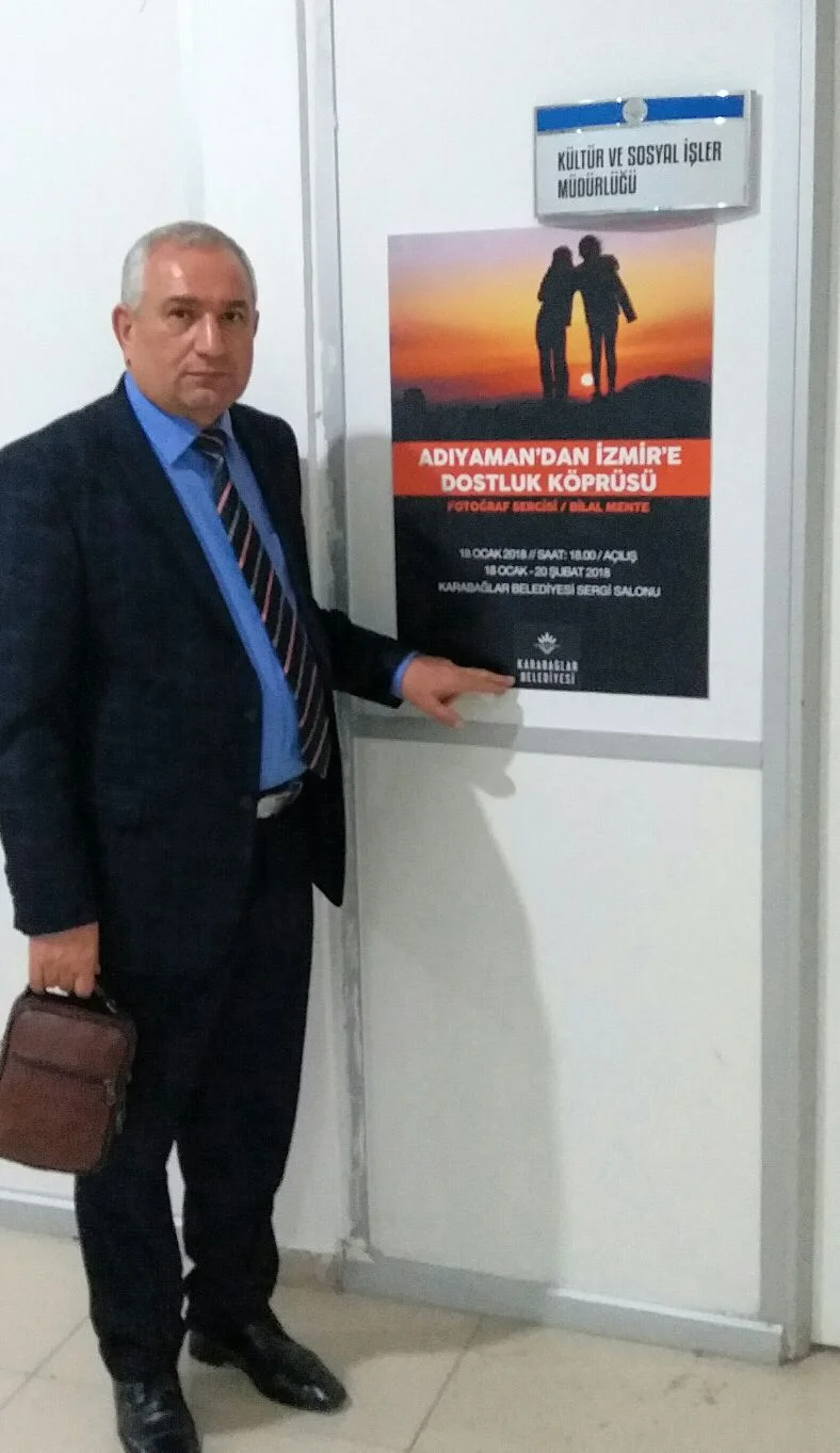 Turizmci ve aynı zamanda Fotoğraf Sanatçısı olan Bilal Mente’nin ilk fotoğraf sergisi olan “Adıyaman’dan İzmir’e Dostluk Köprüsü” büyük beğeni kazandı. Nemrut Dağı başta olmak üzere Adıyaman’ın tarihi ve turistik yerlerinin fotoğraflarının yer aldığı sergi, Karabağlar Belediyesi Sergi Salonu’nda görücüye çıktı. Etkinliğe, Belediye Başkanı Muhittin Selvitopu, belediye başkan yardımcıları, belediye meclis üyeleri, siyasi parti temsilcileri ve sivil toplum kuruluşları temsilcileri ile vatandaşlar katıldı.