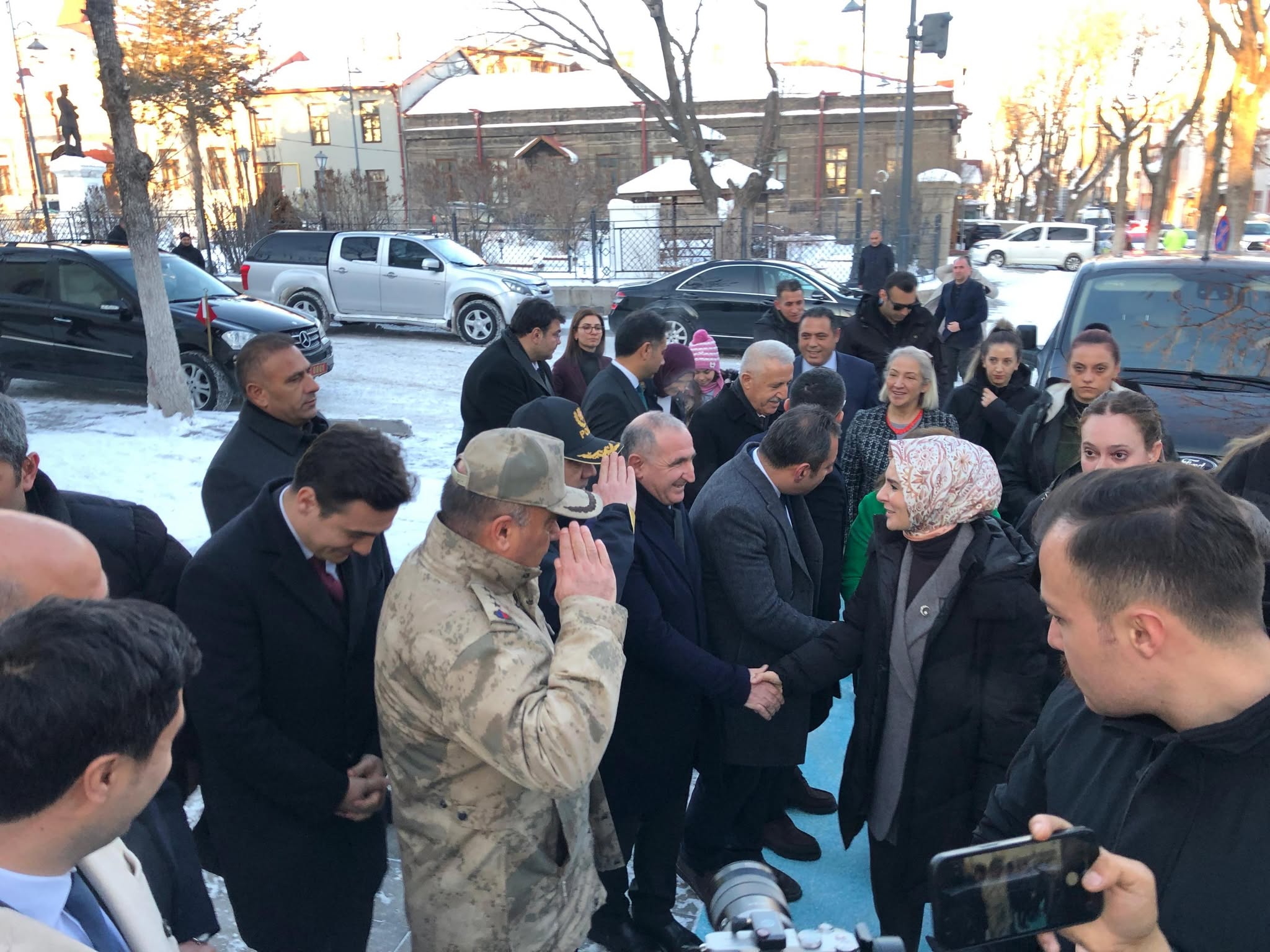 Valilik binası önünde Kars Valisi Ziya Polat, AK Parti Kars Milletvekili Adem Çalkın, eski Ulaştırma, Denizcilik ve Haberleşme Bakanı Ahmet Arslan ve Kars Belediye Başkanı Prof. Dr. Ötüken Senger tarafından karşılandı. Karşılamanın ardından Valilik Şeref Defteri’ni imzaladı.